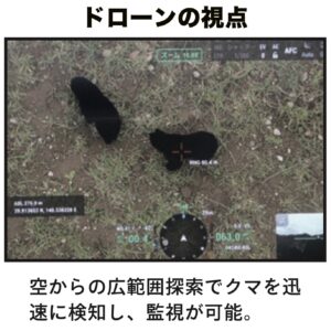 藪や草むらに潜むクマは肉眼での発見が難しく、これが予期せぬ遭遇や人身被害の大きな要因となっています。 本システムは、ドローンに搭載した「可視/赤外線/暗視カメラ」と「リアルタイムAI解析」を組み合わせることで、従来困難だった隠れたクマの検知精度を飛躍的に向上させます。